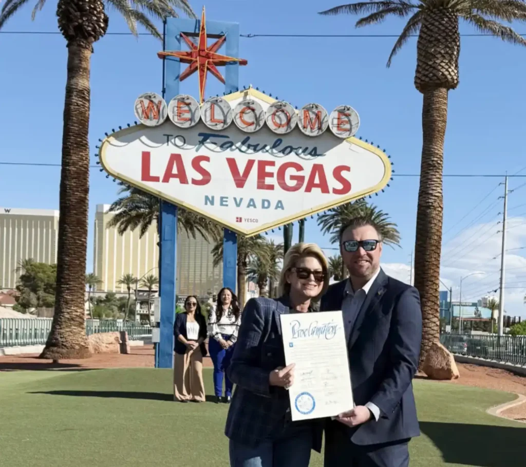 April Becker, comisionada del condado de Clark, tuvo la gentileza de organizar una sencilla y sensible ceremonia junbto al cartel de ‘Welcome to Fabulous Las Vegas’.