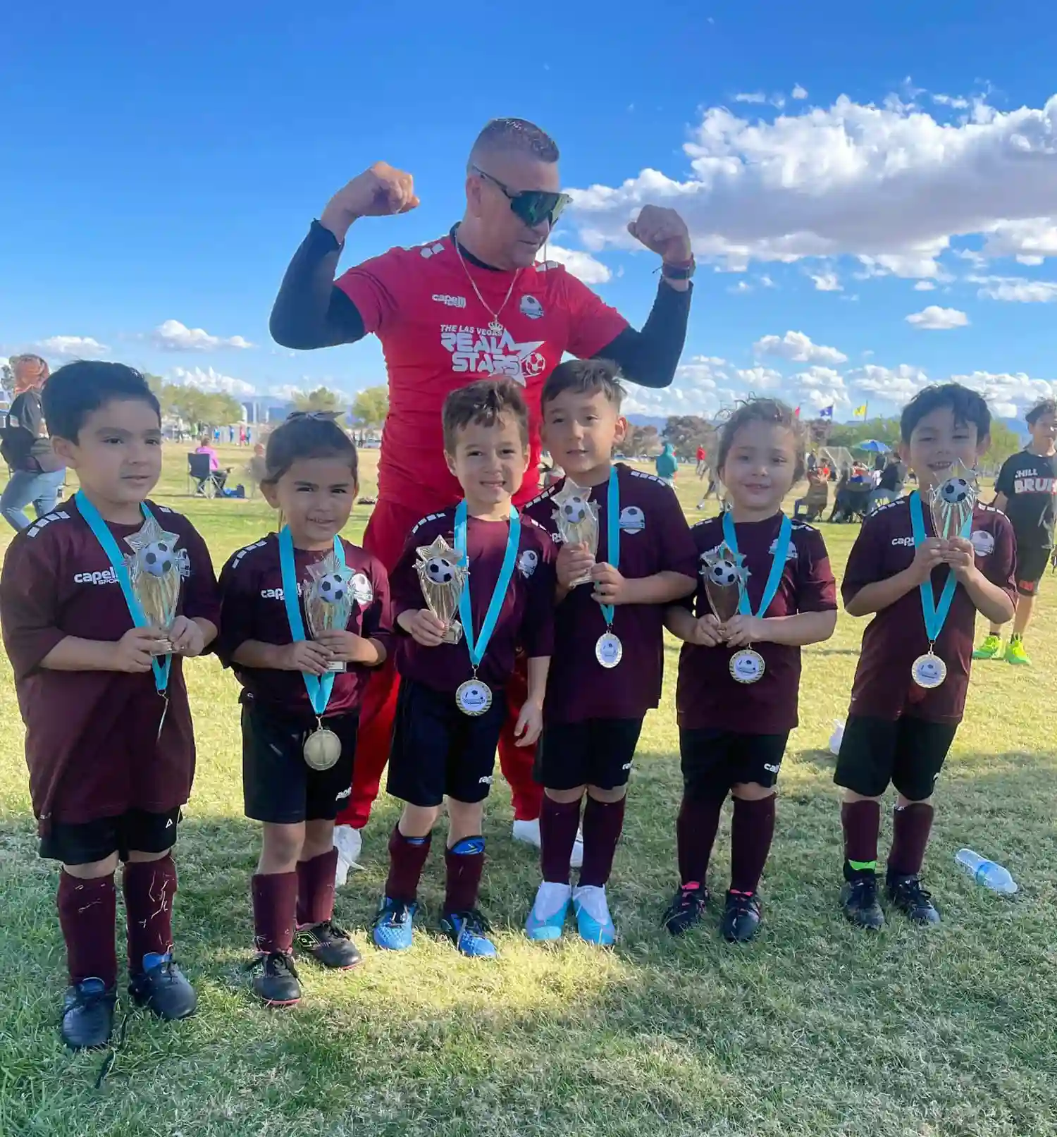 Cada pequeño va a recibir una medalla, playera, short, medias y un balón, además de la publicidad para los sponsors, sus compañías, los entrenadores.